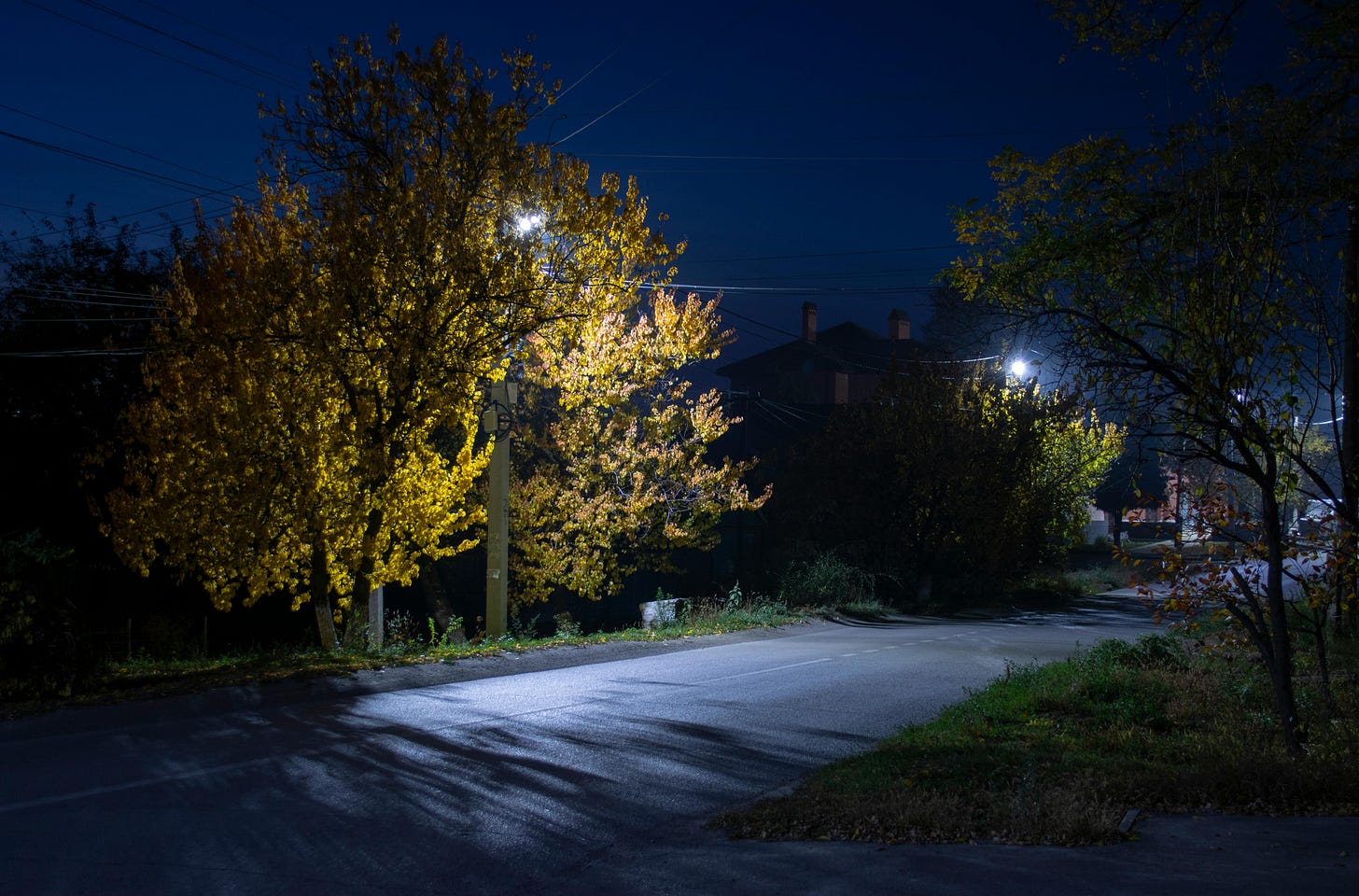 But the city tree’s leaves fall without season. Some drop too soon to spare the tree; others cling too long, bedazzled by the ever-present light. The tree keeps working under false gods at night. The night photons are feeble and take too much without giving enough back. Still, the roots curve around foundations, leaves endure the fumes, and the bark absorbs the impacts. Sometimes people even pause near it, admiring how the tree looks when sodium lights and neon signage hit it at different strengths, tinting the leaves with unnatural shades of green and yellow.